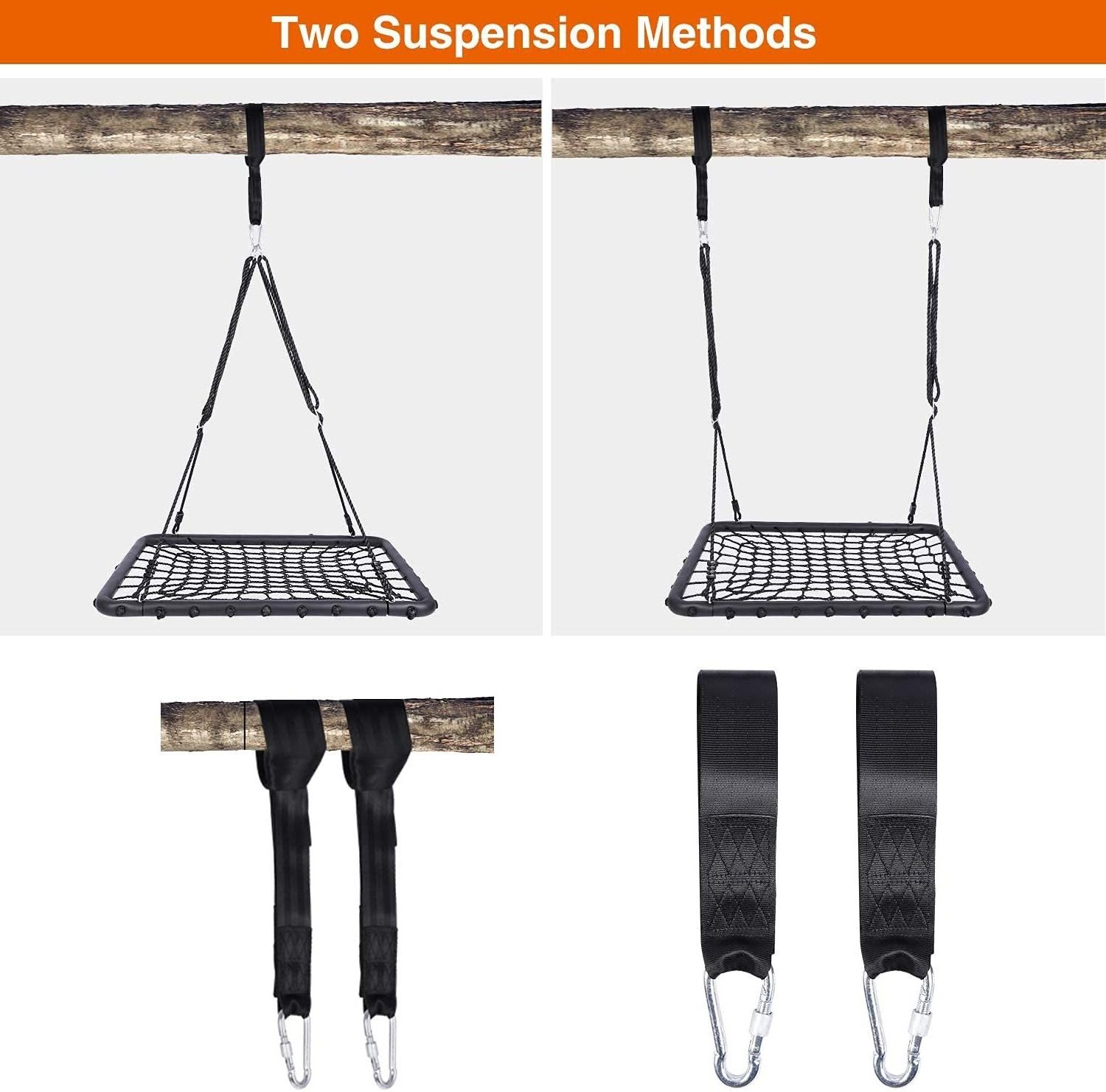 * 【Rectangle Seat Web Swing】 IRIS rectangle swing features 40''/102cm long and 30''/76cm wide swing seat. Perfect large size wide accommodates for multiple kids, providing they with a fun leisure space.