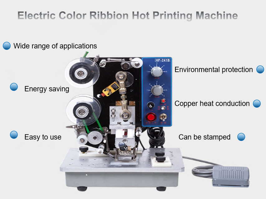 HP-241B desktop electric ribbon coding machine is a table type semi-automatic machine, which can be used for printing the date of production and batch in tje industries of food, beverage.This machine adopts hot stamp ribbon instead of liquid in.It can print clear words on any packing materials with features of simple operationand convenient maintenance.