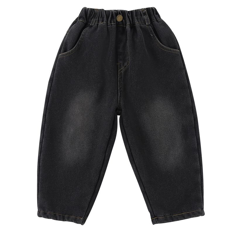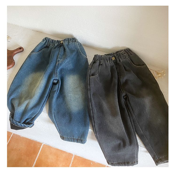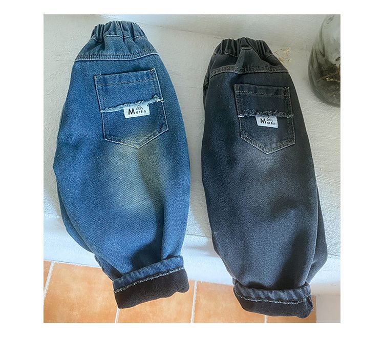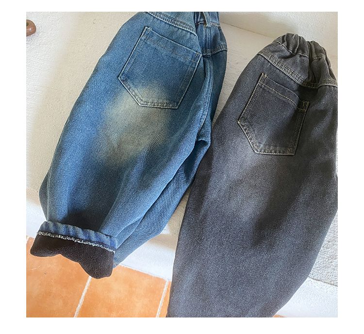 Children's denim pants with integrated fleece for boys and thickened girls' clothing new autumn and winter casual baby pants