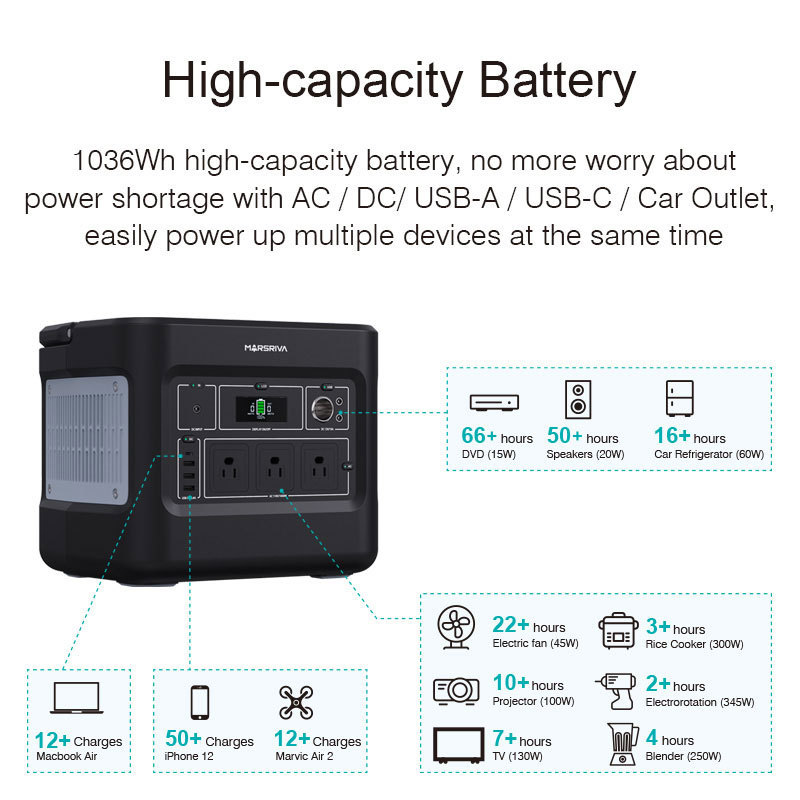 If you play outdoors, the power stations can power a variety of devices, such as: mobile phones, computers, lighting and so on.