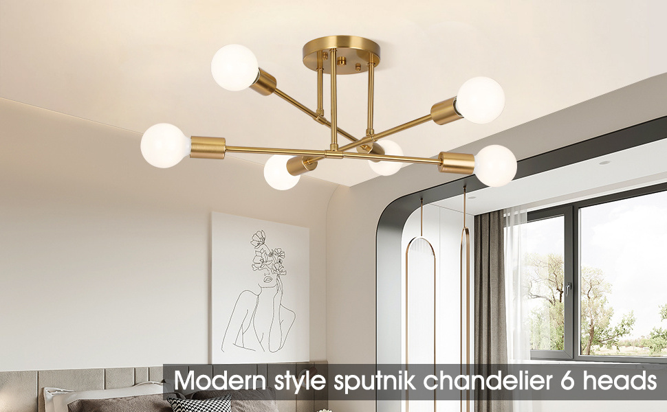 Modern Style Gold Sputnik 6 heads Chandelier