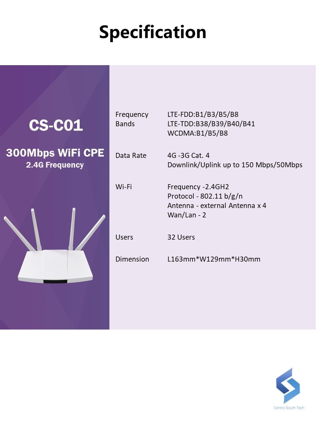 Capable of connecting up to 32 Wi-Fi devices, CS-C01 CPE router allows you to share internet with your friends and family, and