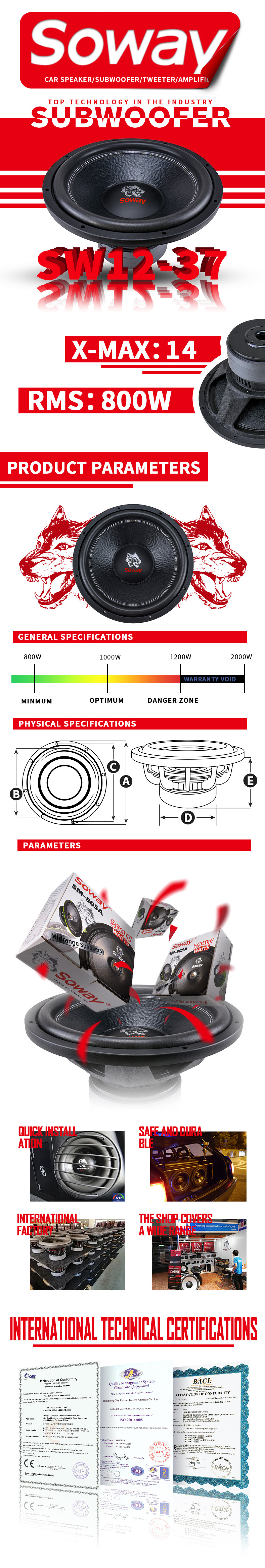 SOWAY SW12-37 10/12/15 inch subwoofer voice coil Iron Basin Frame Foam Edge wholesale car audio powered 800w rms car speakers
