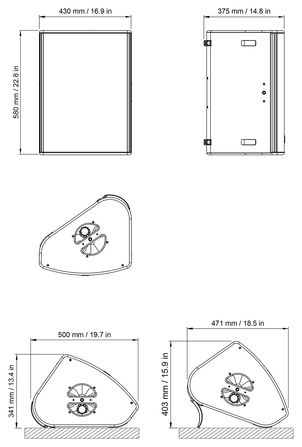 1 DIN580-compatible M8 threaded insert 4 M10 threaded inserts 2 × 35 mm pole sockets |