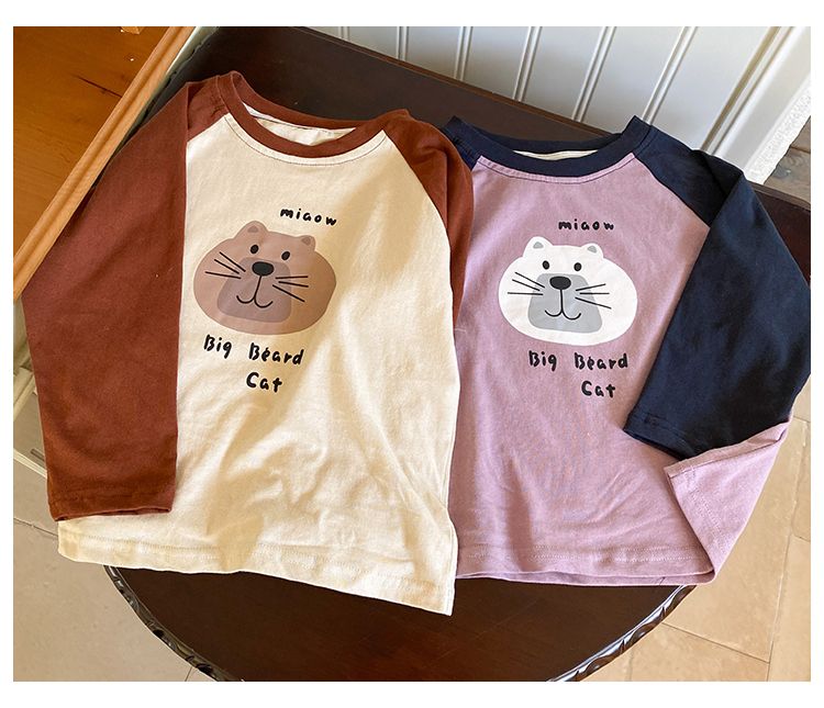 Children's long sleeved pure cotton boys' autumn clothes, loose girls' spring and autumn cartoon tops