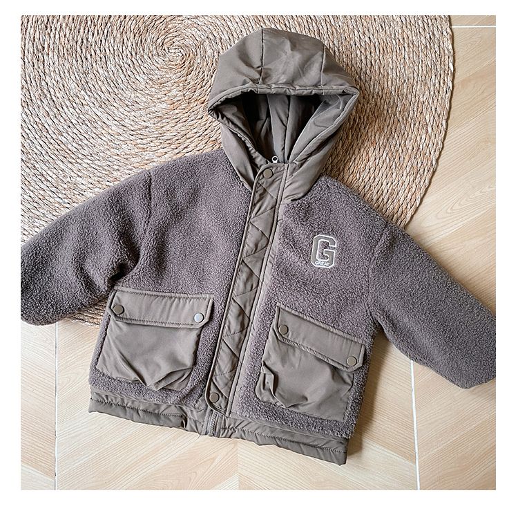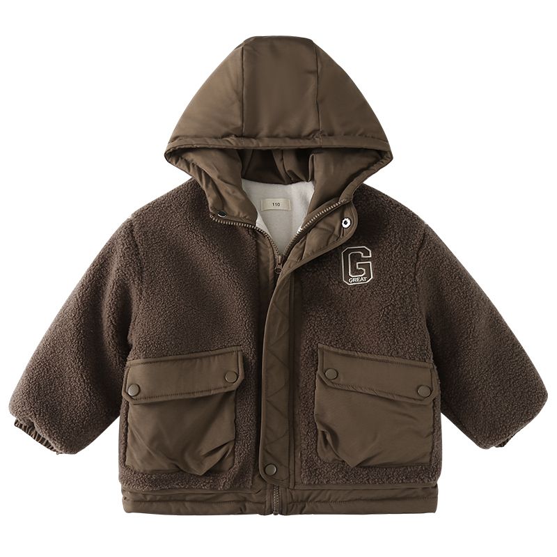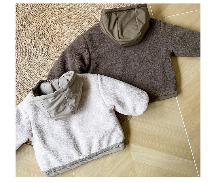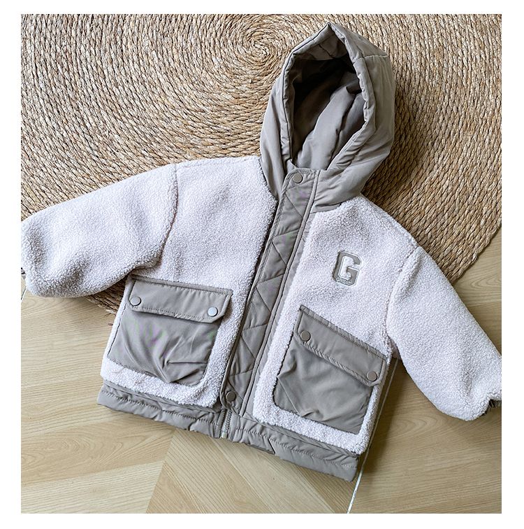 Children's cotton coat with thick velvet for winter warmth, cotton clothing for boys and girls 2024 new baby hooded jacket
