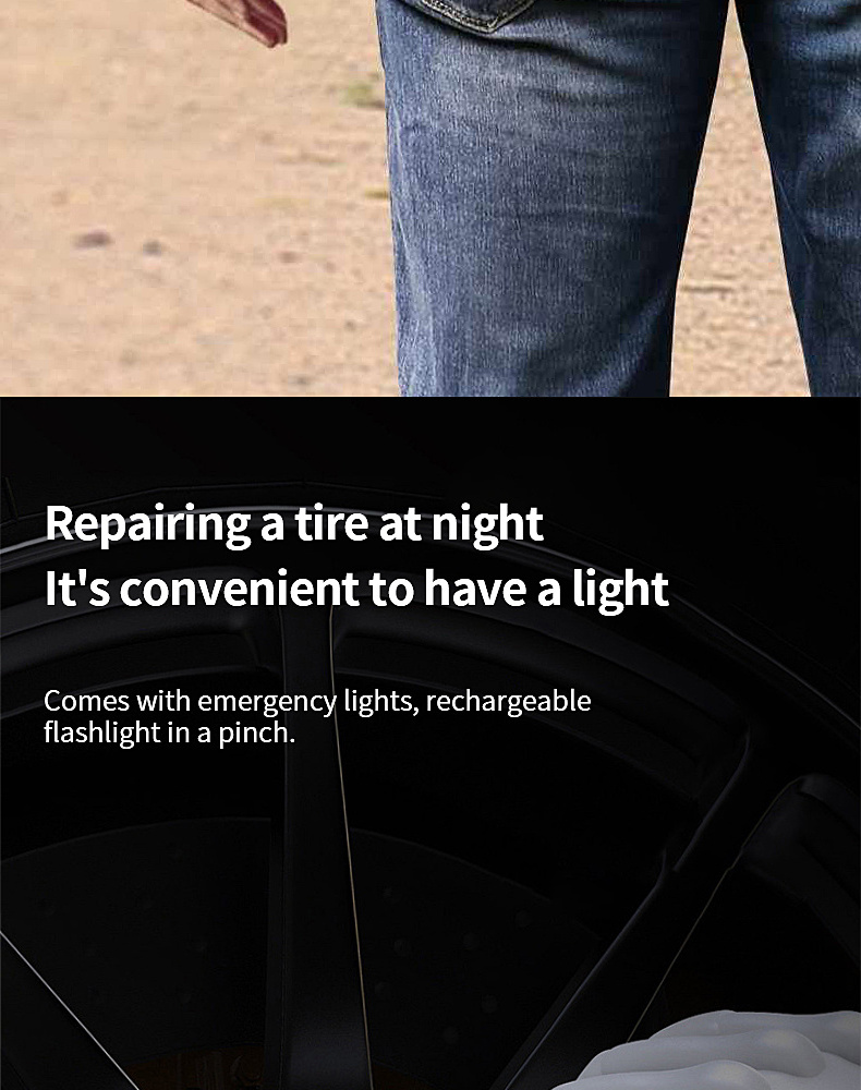 ·【Super inflation capacity】: It is powered by a built-in large-capacity battery, which provides high-speed airflow to quickly inflate tires, perfect for emergency situations where tires run out.