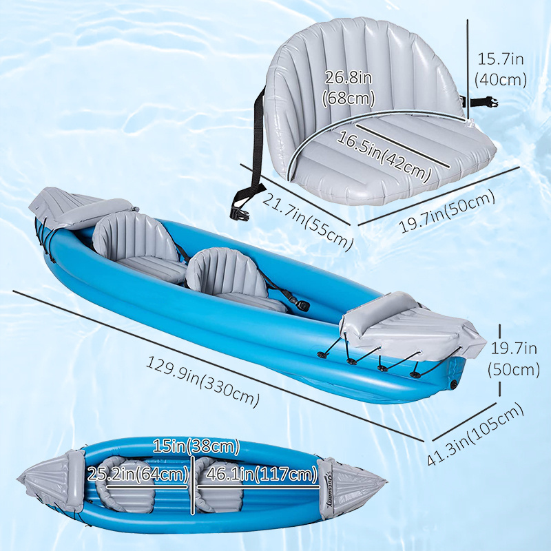 * Portable and foldable: Only take few minutes to unroll and inflate the kayak when using the suitable pump. * Overall dimensions: 330L x 105W |