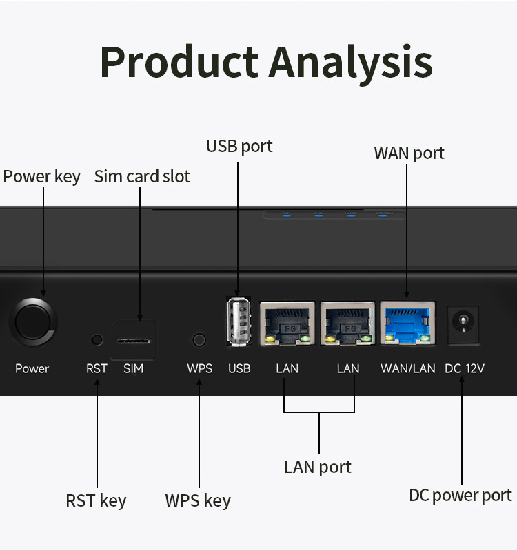 PWR, WiFi, 5G, 4G, Ethernet port indicator light