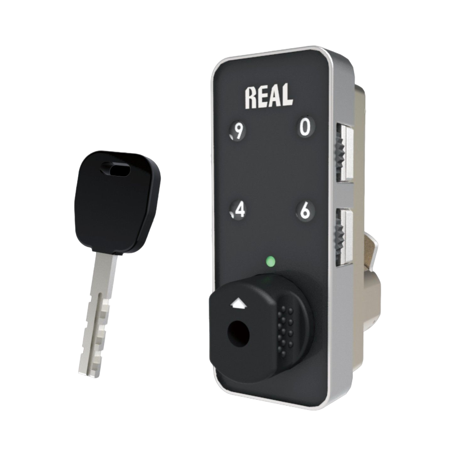 RL-9046-B keyless combination lock provides dual mechanism: combination for user and override key for management and emergency opening.