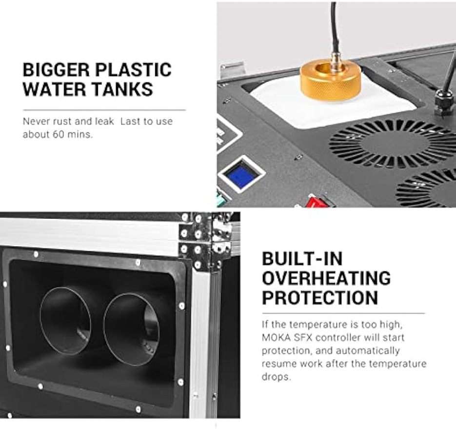 Use this 3000W fog machine to create a sense of mystery and a truly unique feeling. Simply fill the container with mist liquid and ice and you can create a dry ice effect for your stage.