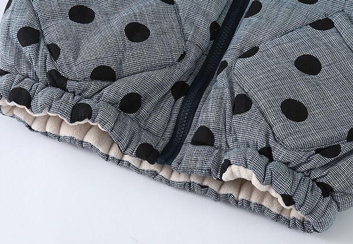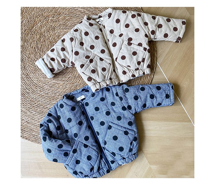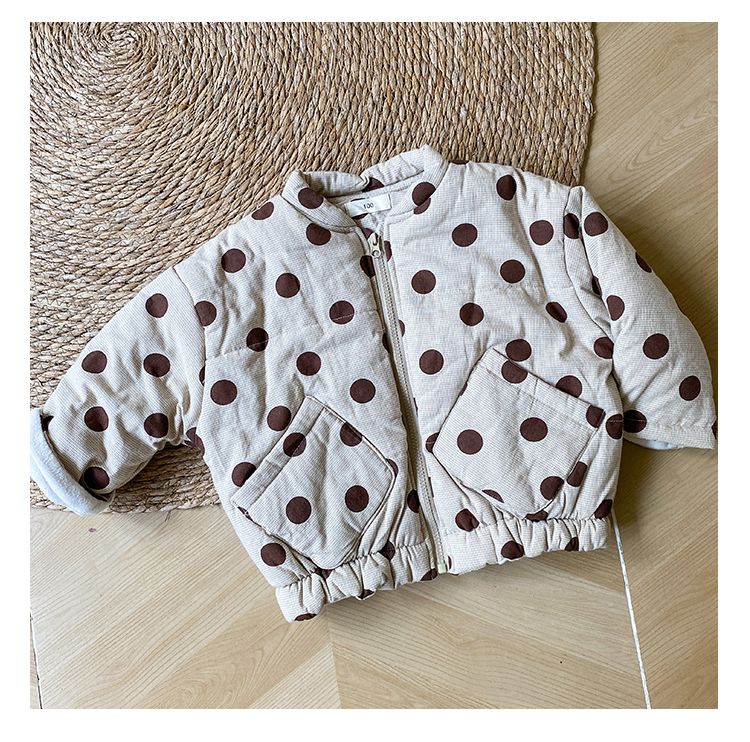 Children's cotton jacket with thick velvet for warmth in autumn and winter, boys' cotton jacket with polka dots, girls' clothing