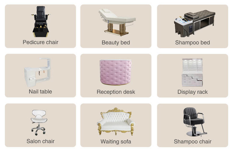 Our main products include pedicure chairs, beauty beds, shampoo beds, manicure tables, and nail lamps. Throughout our production processes, we maintain stringent quality control measures, ensuring the delivery of high-quality furniture products to our customers.