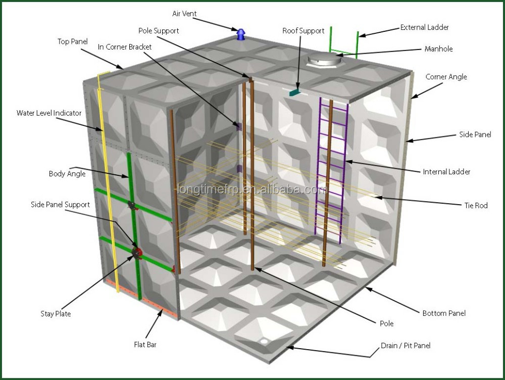 FRP water tank, GRP modular water tank, SMC Rectangular water storage tank for Firefighting and Drinking Water Treatment,etc.