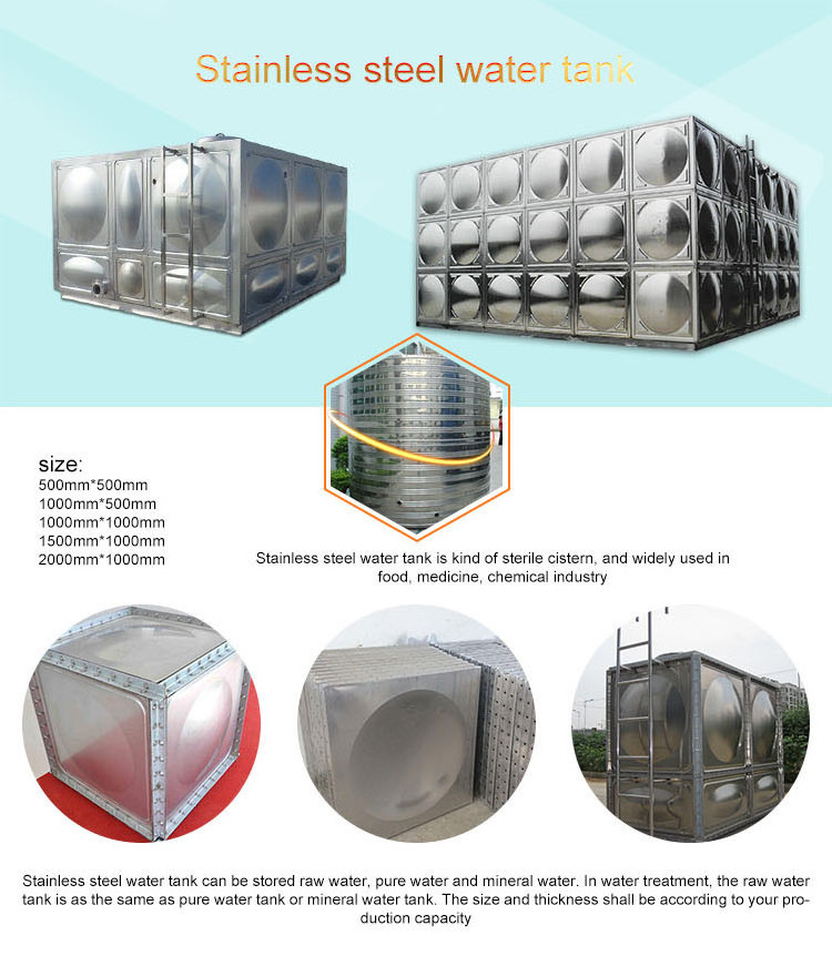 Wide application : as the storage equipment for drinking water, reclaimed water and fire water,water tank has widely used in mining, residential buildings, hotels, office buildings, schools, restaurants and other public facilities.