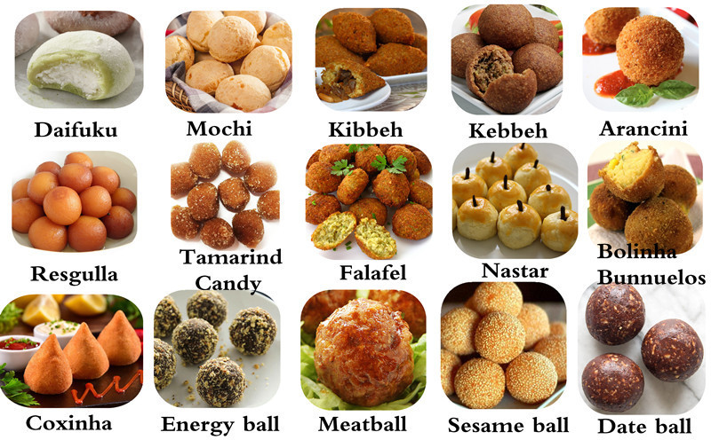 cream mochi, meat ball,filled cookies,fruit bar and so on (different food with different device).