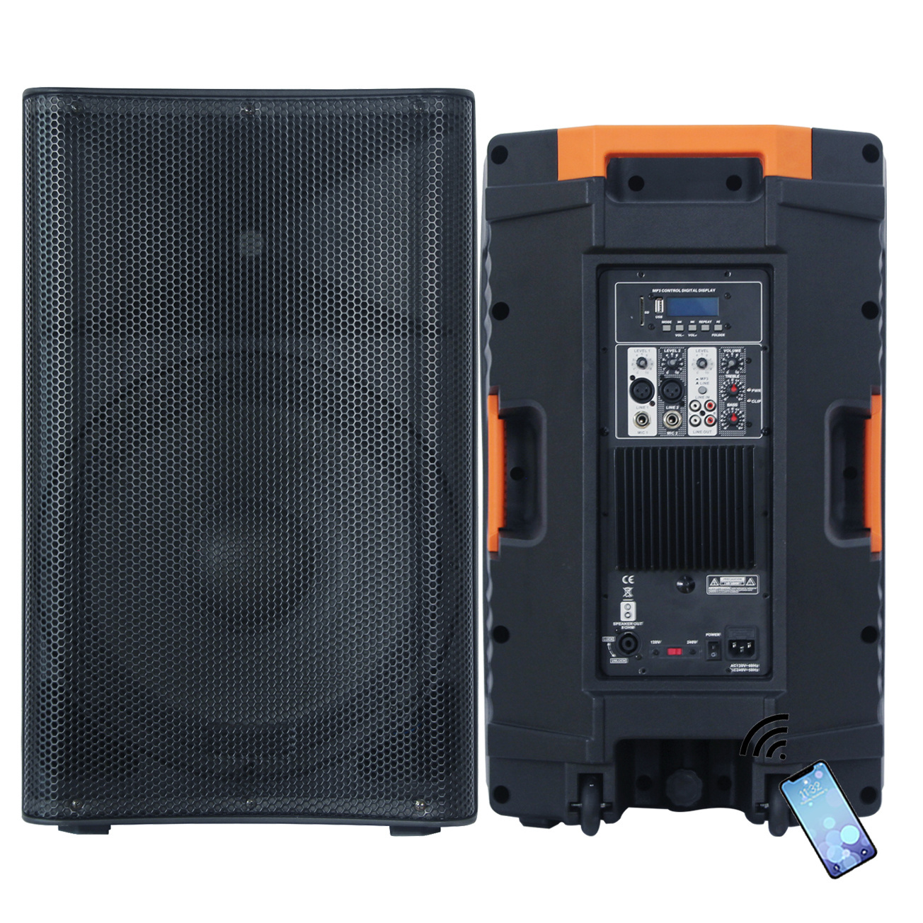 Professional audio 1800 Watts 15 inch PA speaker system outdoor DJ sound box equipment with BT AUX MIC GUITAR input