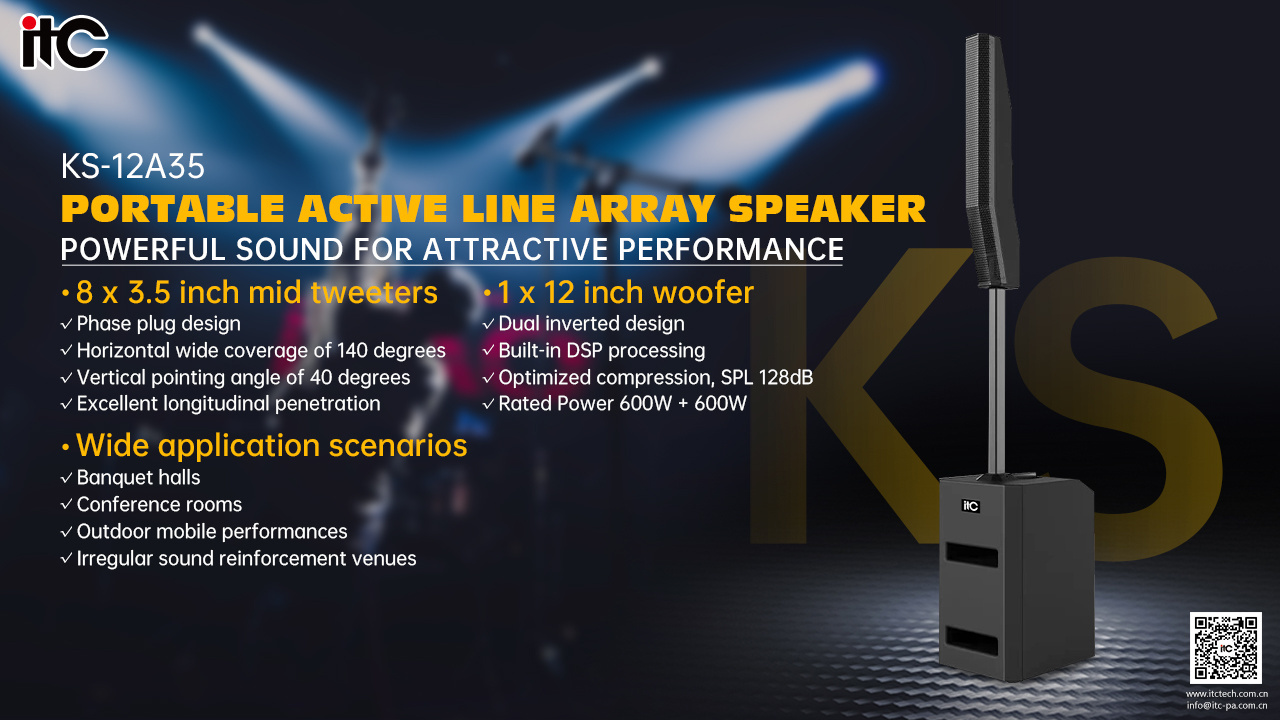 3. The active portable line array speaker system combines strong sound effects and portability, with the advantages of simple installation, large sound pressure level, and wide low-frequency range.