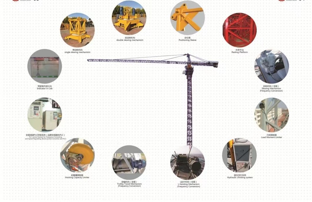 meters, lifting weight of 3 tons to 25 tons. It is widely used in high-rise hotels, residential buildings, high-rise industrial buildings, large-span industrial plants and tall chimneys and other tall tower buildings.