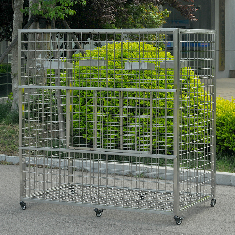 Stainless steel parrot cage, stainless steel wire mesh surface and stainless steel square tube frame, large space, sturdy and durable, with lock movable wheels for easy movement and fixation
