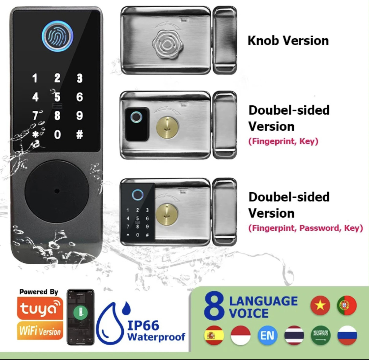 Fingerprint+Code+Card+Key(optional:tuya or Ttlock)